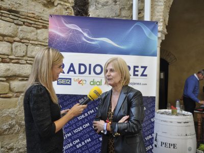 Pedro Alemán de Radio Jerez, junto a la alcaldesa de Jerez, María José García Pelayo