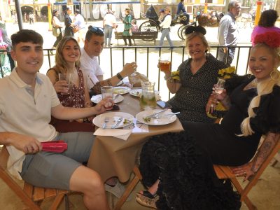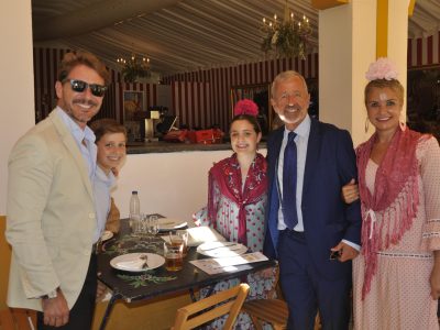 Nuestros compañeros de Radio Jerez, Pedro Alemán y Ruth Delgado disfrutando con la familia en la caseta de Radio Jerez